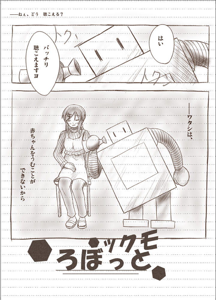 「私も子供産めました」と呑気に喜ぶロボットに「ワシは神様じゃ」って感じでつくも神さんがツッコミを入れて終わる、というノホホンとしたものを描こうと思ってました。