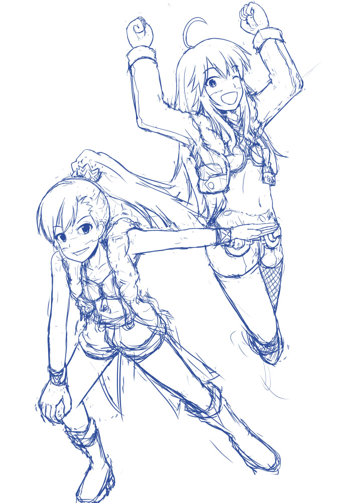 真美と美希でアイラインずれてしまってるのでチグハグに見えるね。並べるならちゃんと考えて描かないとだね。