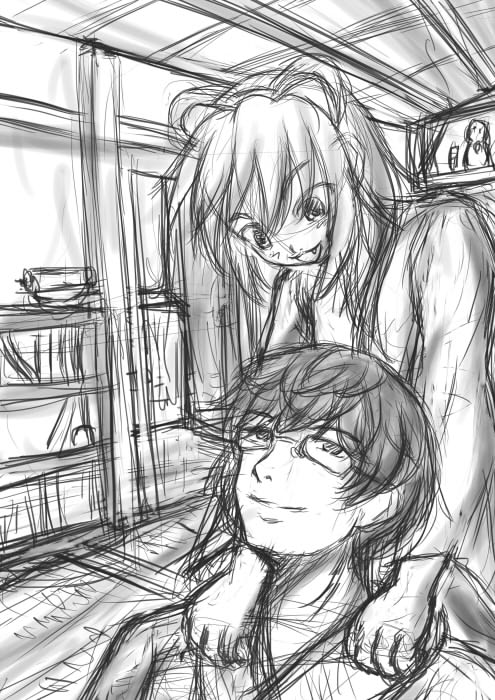 なんとなく、手が赴くままに落書きして、なんとなく気が赴くままに小説みたいのを書こうと思ったけど、ここでダウン。というか満足。