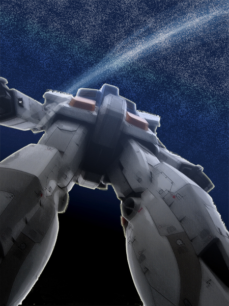 ってもまぁ実際見つけて見えげる18m。これが足元から撮った写真in加工なんだけど、見てご覧の通り顔が見えないの。やっぱでかいんだなぁって思った。あと18mが利に適ってるっていうか、丁度コクピットが一人分乗れるサイズなんだよね、あの大きさだと。そういうのちゃんと計算して作ったんだなぁって思うと凄いと思う。